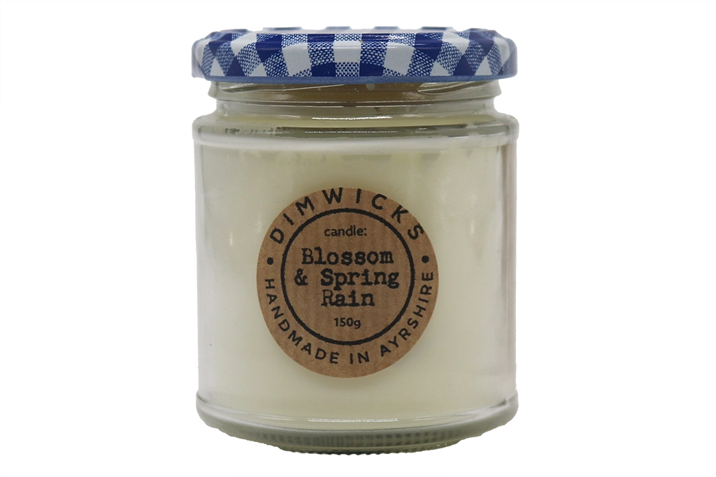 Blossoms & Spring Rain Small Jar Candle. Handmade Candle Jars from Dimwicks Candle Company. With a large range of popular scents, Dimwicks excel at eco-friendly, sustainable candle making. Made from 100% soy wax and smelling absolutely divine these Dimwicks Candles have scent all the way to the bottom! You are sure to smell them even without being lit as they softly add aroma to any room. Perfect for those who enjoy a background scent during the day and aromatherapy in the evening by candle light.