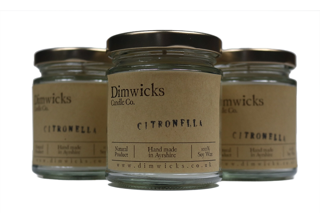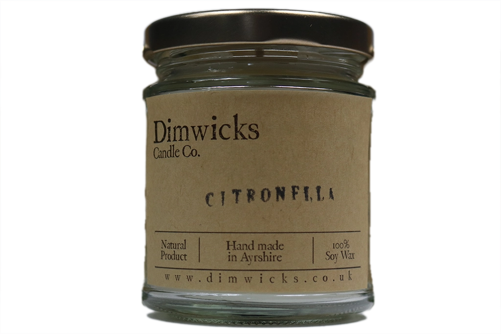 Citronella Small Jar Candle. Handmade Candle Jars from Dimwicks Candle Company. With a large range of popular scents, Dimwicks excel at eco-friendly, sustainable candle making. Made from 100% soy wax and smelling absolutely divine these Dimwicks Candles have scent all the way to the bottom! You are sure to smell them even without being lit as they softly add aroma to any room. Perfect for those who enjoy a background scent during the day and aromatherapy in the evening by candle light.