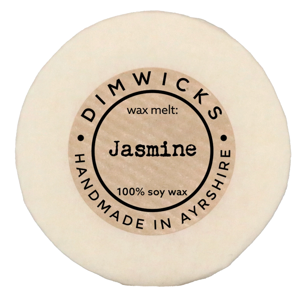 Jasmine Wax Melt. The Wax Melt is Dimwicks’ Signature product! Made from 100% soy wax and completely eco-friendly Dimwicks have turned this product in to a must have fan favourite. Long scented burn you won’t need to replace your wax melt often. The aroma will still continue to emanate while cold so you can enjoy the subtle scent filling your rooms between burns or long after your tea-light has burnt out. Every single wax melt is hand made and hand wrapped to ensure the perfect finish.
