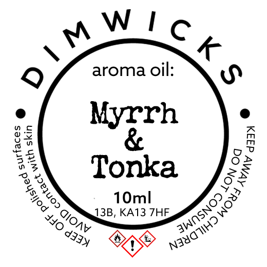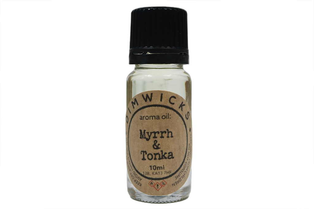 Myrrh & Tonka Aroma Oil. Aromatic and Aromatheraputic oils from Dimwicks Candle Company. Dimwicks Aroma Oils are suitable for burners and diffusers! These small viles are build to last! Stunning variety of scents from background light scents to calm the mind to strong scents that will fill your home with a scent the household can enjoy. Just add a few drops to water in your burner and you are ready to go.