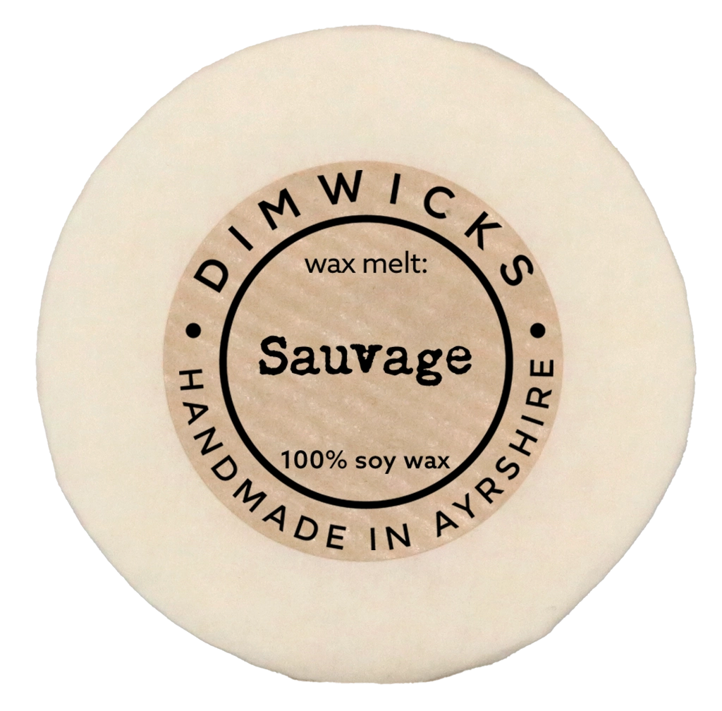 Sauvage Wax Melt. The Wax Melt is Dimwicks’ Signature product! Made from 100% soy wax and completely eco-friendly Dimwicks have turned this product in to a must have fan favourite. Long scented burn you won’t need to replace your wax melt often. The aroma will still continue to emanate while cold so you can enjoy the subtle scent filling your rooms between burns or long after your tea-light has burnt out. Every single wax melt is hand made and hand wrapped to ensure the perfect finish.