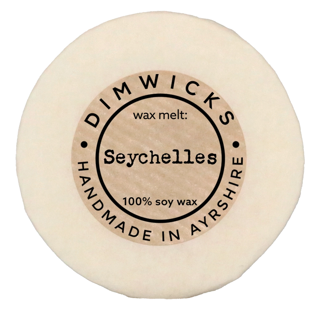 Seychelles Wax Melt. The Wax Melt is Dimwicks’ Signature product! Made from 100% soy wax and completely eco-friendly Dimwicks have turned this product in to a must have fan favourite. Long scented burn you won’t need to replace your wax melt often. The aroma will still continue to emanate while cold so you can enjoy the subtle scent filling your rooms between burns or long after your tea-light has burnt out. Every single wax melt is hand made and hand wrapped to ensure the perfect finish.
